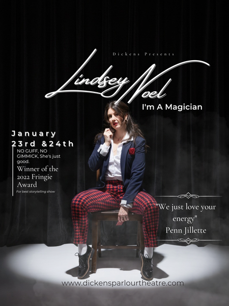 In need of an evening of enchanting storytelling and mesmerizing magic at “LINDSEY NOEL: I’M A MAGICIAN,” taking center stage at the Dicken Parlour Theatre. Not only is it exciting, this show is a whimsical journey where Lindsey Noel relives her award-winning comedic odyssey where flying lemons meet vampires in a whirlwind of spellbinding wonder. Curated by the multifaceted virtuoso Lindsey Noel, winner of the 2022 Fringie Award for “Best Storytelling Show,” her act takes roots in personal tales of magic and mystery!